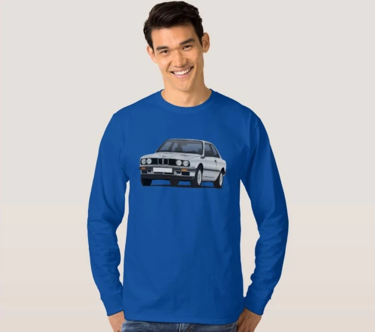 BMW E30 kasarilta kuvana t-paidoissa ja muissa tuotteissa. BMW harrastajan yllätykset ja toivelahjat!